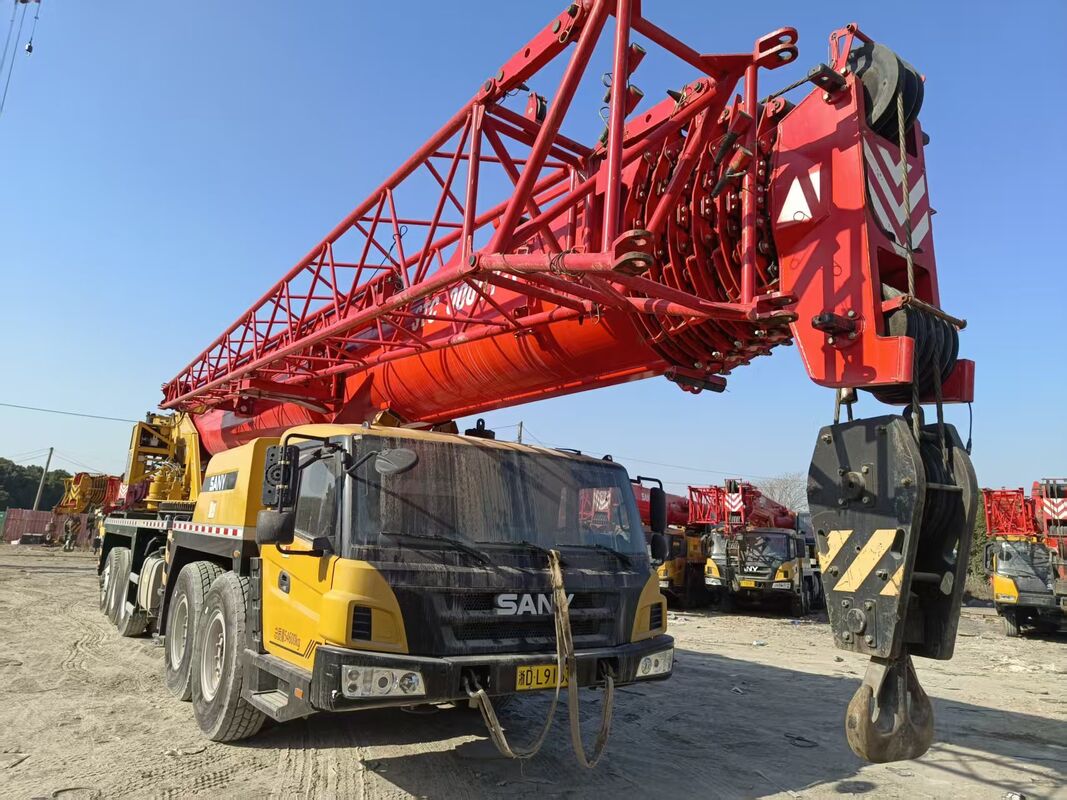 Capacity & Setup: 100-ton lifting capacity supported by dual hooks, designed for extended heavy-duty service cycles.